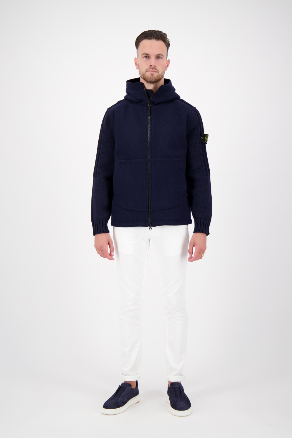 Stone Island You can buy Stone Island online or in the shop at Hans Voortman. Every season we have a large collection of Stone Island jackets, sweaters and cardigans. Characteristic of the Stone Island items is the well-known logo in the shape of a compass. The logo is fastened with buttons. You will not see this logo on a Stone Island polo or Stone Island t-shirt; these items have the logo on the chest. An item from Stone Island is the end result of years of research into the best materials and painting techniques. The colors of Stone Island jackets and softshell jackets are unmatched; no brand can produce such deep, vibrant colors. In addition, you often find very special materials. For example, there are Stone Island sweaters that change color when it gets colder or warmer. At Hans Voortman we are therefore very fans of this beautiful Italian brand. You can be sure that you are buying genuine Stone Island clothing from us, because every product has a code.